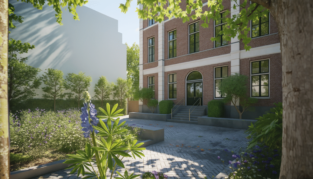 Een belangrijk onderdeel van het ontwerp was de inrichting van de openbare ruimte rondom het gebouw. MCK ontwierp deze als een uitnodigende verblijfsplek die de buitenruimte meer betrekt bij het wonen. Door vergroening, zitplekken en een zorgvuldige overgang tussen privé en openbaar is een aangename stedelijke ruimte ontstaan die uitnodigt tot gebruik en ontmoeting.